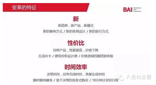 最后是我最关注的:时间效率。这个时代,大家非常节约自己的时间,每个人被很多碎片的东西打扰,很多的决策要在非常短的时间内做,所以,一个好的产品要让大家随时随地能够健身,易于决策的宜家式购买,或者10分钟计划完一次行程。